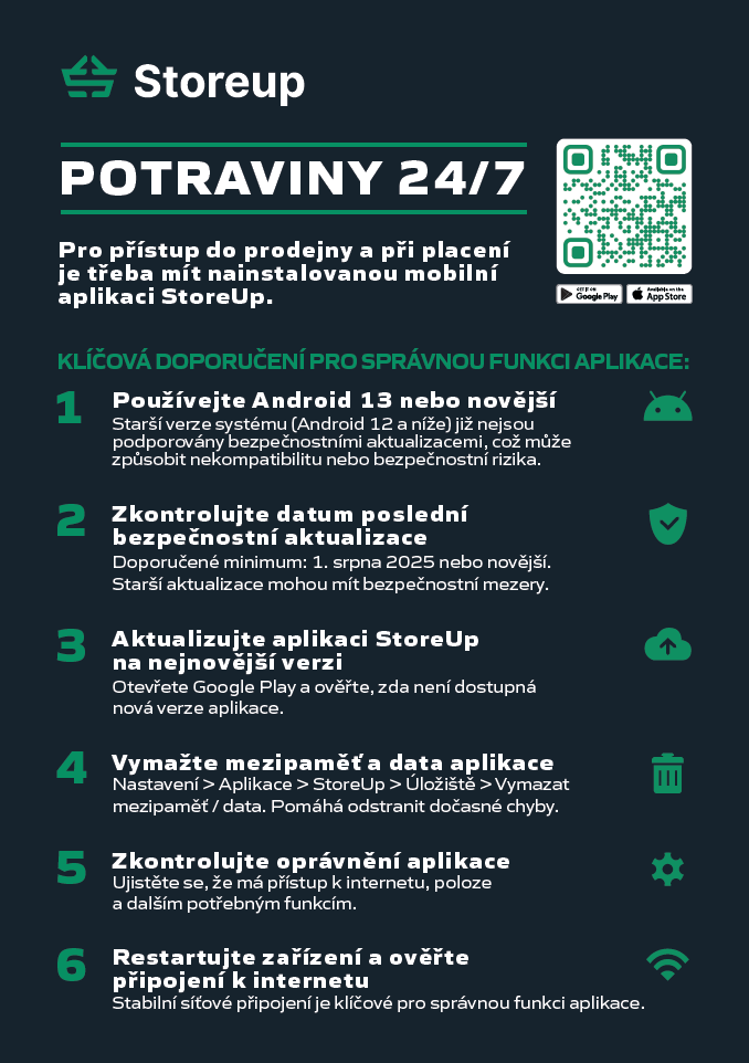 Doporučení pro správnou funkci aplikace do Obchůdku Nesvačilka 24/7