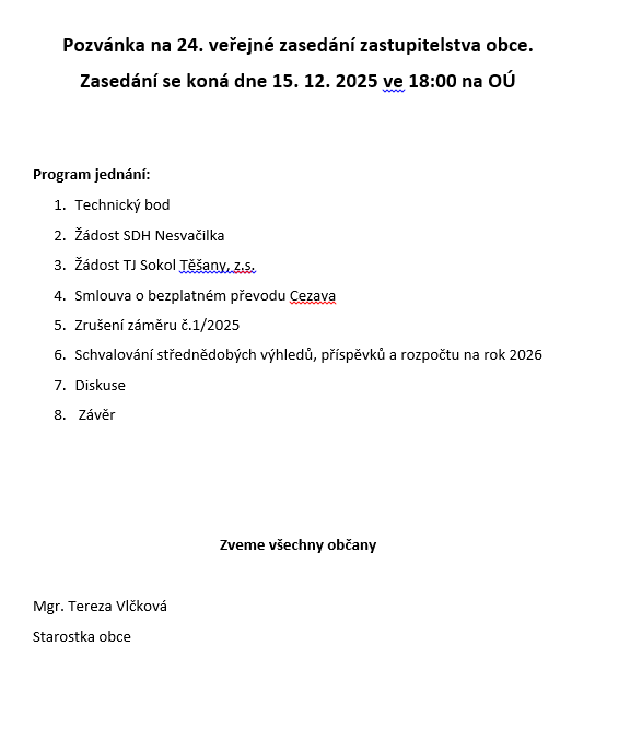 24. veřejné zasedání ZO dne 15. 12. 2025