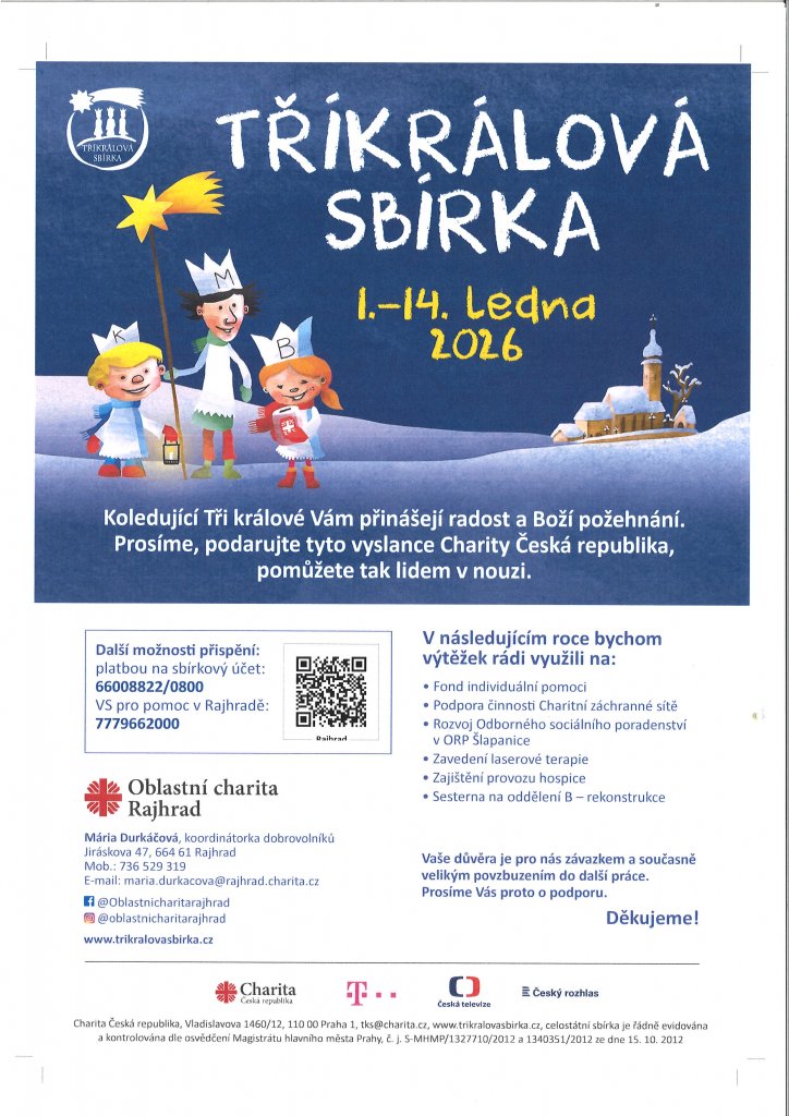 KOLEDNÍCI BUDOU V NAŠÍ OBCI CHODIT V NEDĚLI 4. LEDNA 2026 OD 14 HOD.